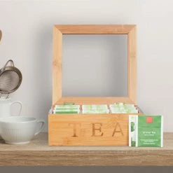 relaxdays Teebox »4 x Teebox transparent mit 6 Fächern«, Kunststoff