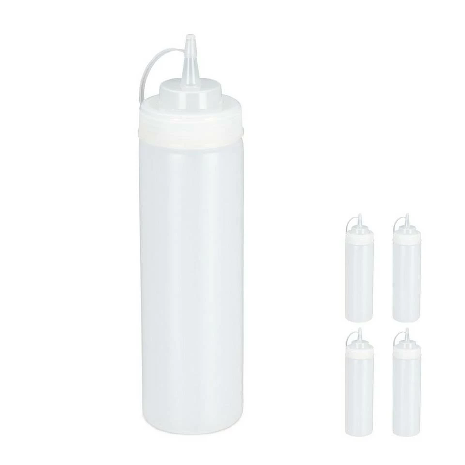 - Für Saucen: Quetschflaschen im 5er Set zum Befüllen mit verschiedenen Saucen – Volumen ca. 750 ml