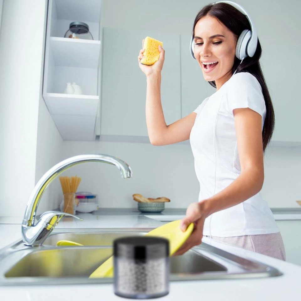- Einfach: Putzbälle mit heißem Wasser in das Gefäß geben und schwenken – Löst Schmutz und Rückstände