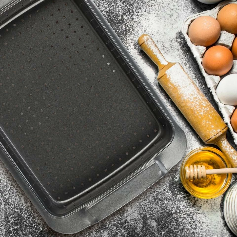 - Robust: Lochbackblech aus bis 230 Grad hitzebeständigem Material – Optimal für Backofen geeignet