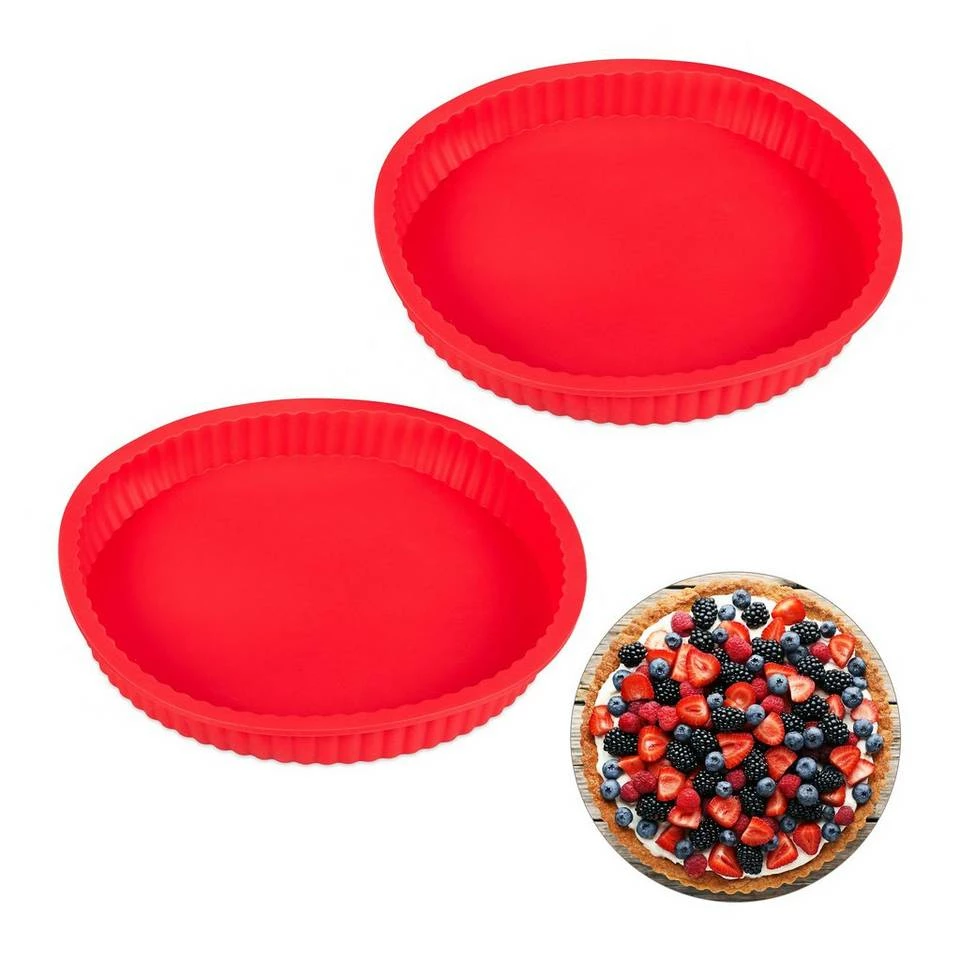 - 2er Set: 2 x Runde Profi Backform aus Silikon – Ideal für Obstkuchen, Kuchenböden, Quiche und Co.