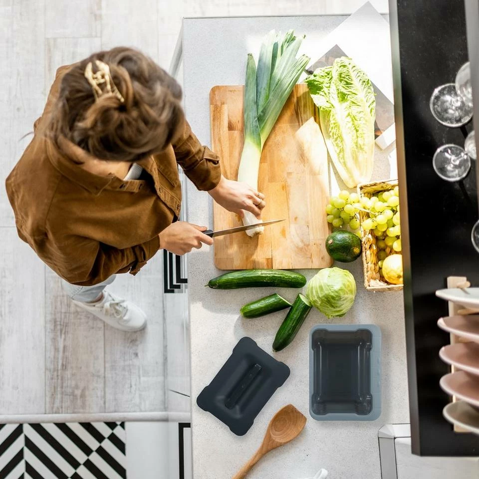 - Für Küche: Kleiner Biomülleimer zum Sammeln von Küchenabfällen – Für Gemüseabfälle, Eierschalen etc.