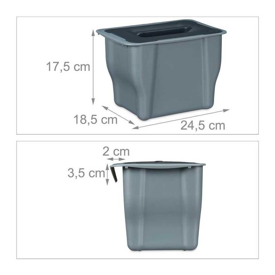 - Hängend: Den Bioabfalleimer einfach an Schranktür oder Schublade einhängen – Für Türstärke bis 2 cm