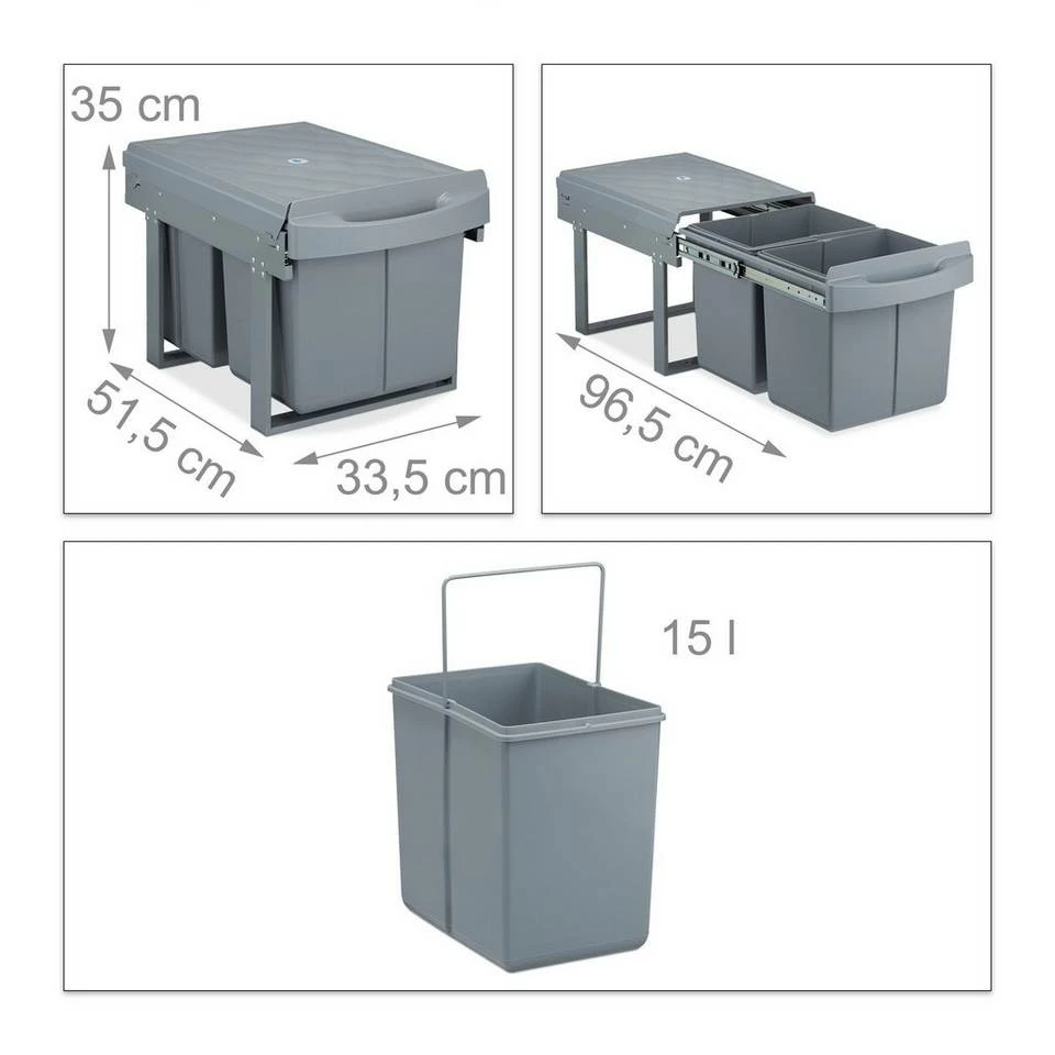 - Basics: Grauer Einbaumülleimer H x B x T: ca. 35 x 33,5 x 51,5 cm – Ca. 15 l Volumen je Abfalleimer