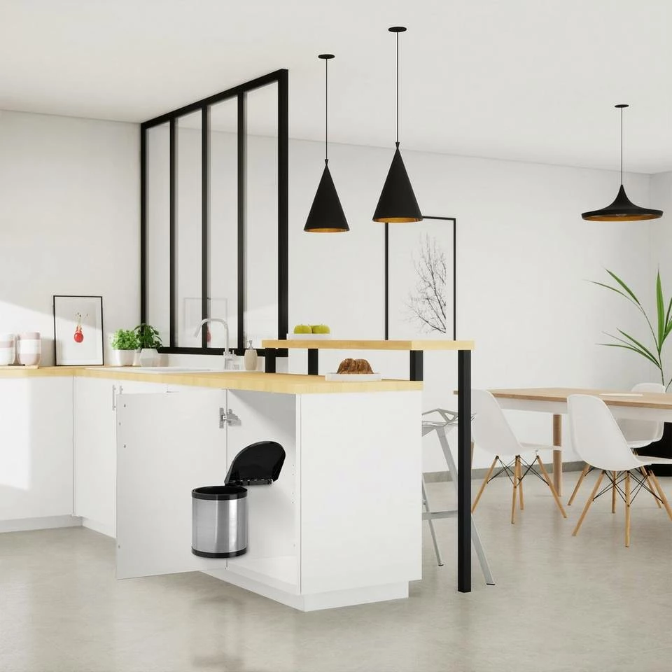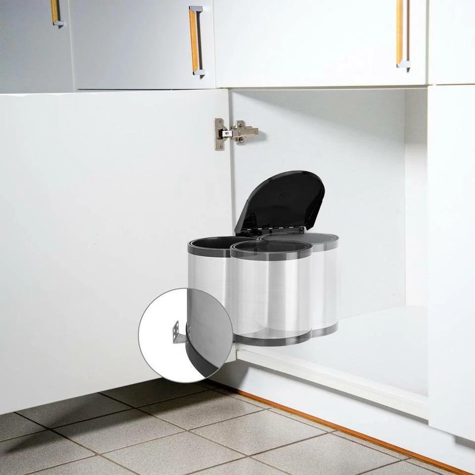 - Für die Küche: Mithilfe des runden Einbaumülleimers lassen Sie Küchenabfälle elegant verschwinden