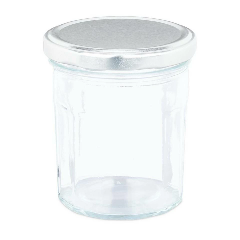 - Basics: Sturzgläser mit edlem silbernem Schraubdeckel – HxD: ca. 9,5×8,5 cm – Füllmenge: ca. 250 ml