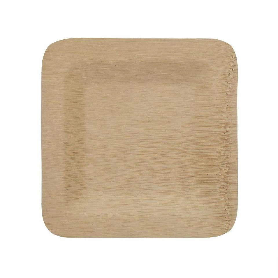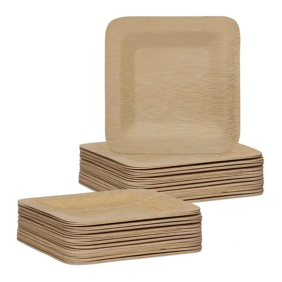 - 50er Set: Eckige Bambus Einmalteller in 18 x 18 cm – Mit natürlicher, individueller Maserung