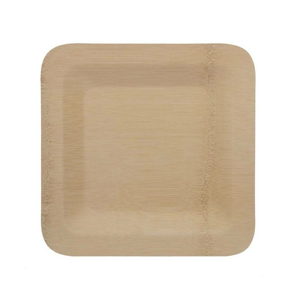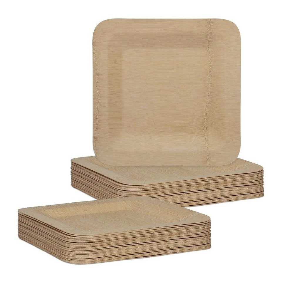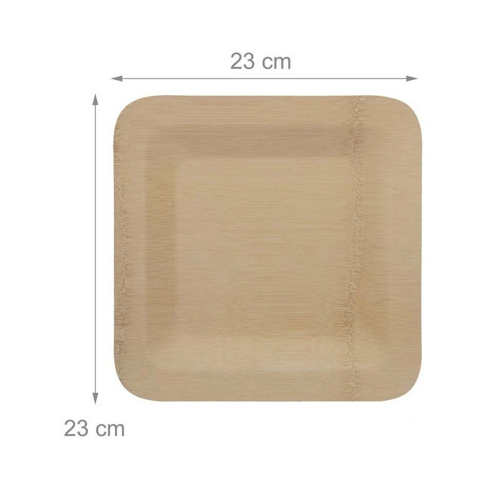 - 50er Set: Eckige Bambus Einmalteller in 23 x 23 cm – Mit natürlicher, individueller Maserung