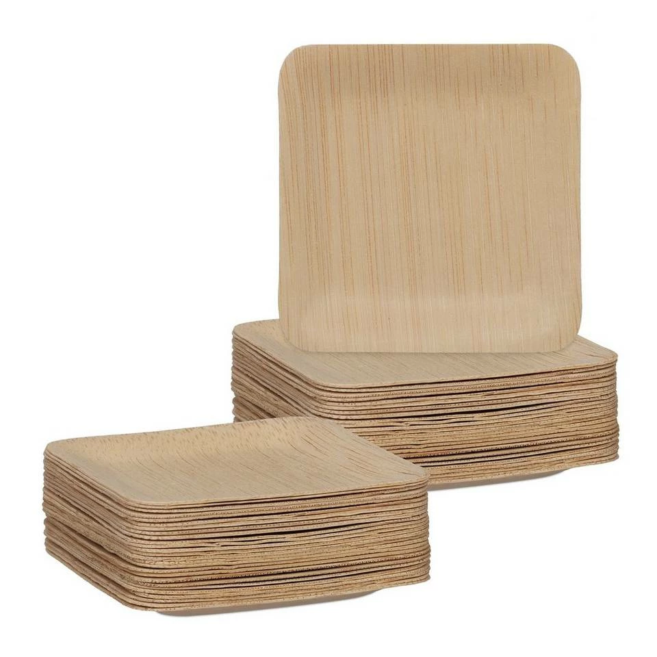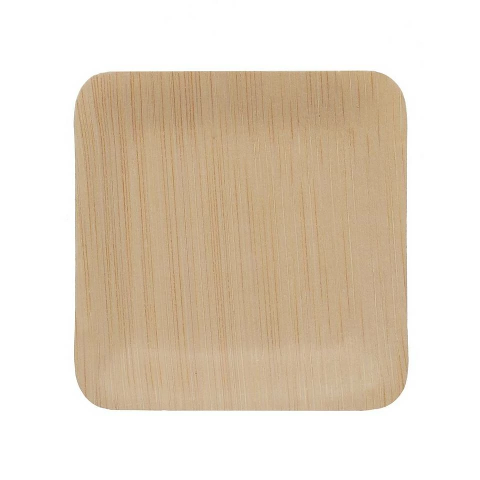 - 50er Set: Eckige Bambus Einmalteller in 8,5 x 8,5 cm – Mit natürlicher, individueller Maserung