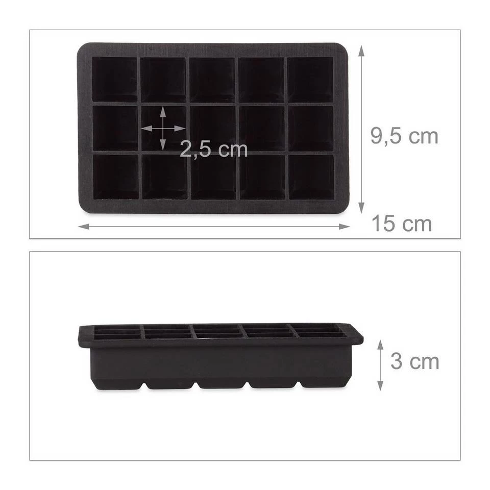 Spülmaschinenfeste Eiswürfelform aus Silikon Sie lieben eiskalte Getränke? Ob im Garten unter der sommerlichen Sonne, beim heimischen Partyabend oder als unverzichtbares Bar-Zubehör: Diese Eiswürfelform aus Silikon sorgt überall für beste Stimmung. Insgesamt dürfen Sie und Ihre Gäste sich mit bis zu 15 Eiswürfeln erfrischen, die jeweils 2,5 cm groß sind. Gegenüber Formen aus Kunststoff bietet das jederzeit weiche Material den Vorteil, dass sich die Würfel sehr leicht von ihm lösen lassen. Die Zeiten des mühseligen Abklopfens angefrorener Eiswürfel gehört mit diesem Eiswürfelbehälter glücklicherweise der Vergangenheit an.