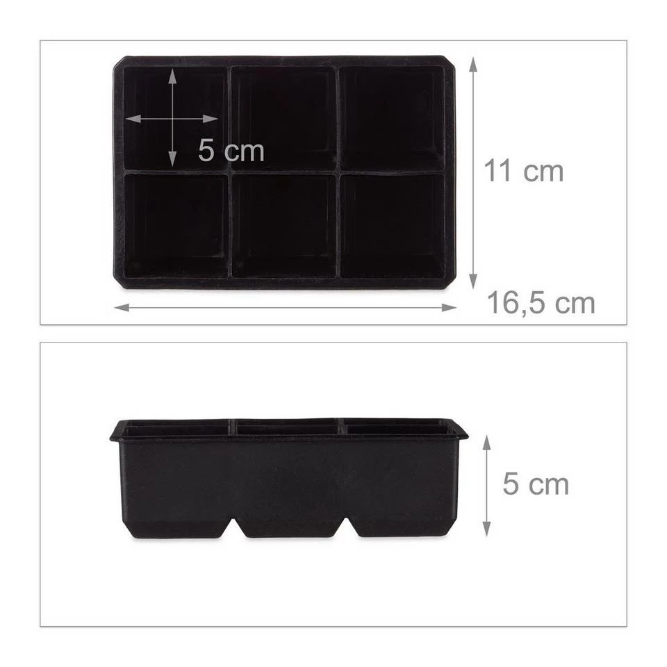 - Große Eiswürfel: 2 XXL Eiswürfelformen aus Silikon für 6 Eiswürfel – Würfel misst ca. 5 x 5 x 5 cm – Gesamtgröße der Silikonform H x B x T: ca. 5 x 16,5 x 11 cm