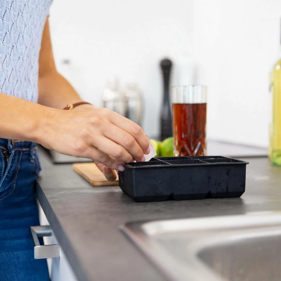 Silikonform für Eiswürfel Sie wollen Ihren Gästen am nächsten Partyabend leckere, eisgekühlte Drinks servieren? Mithilfe dieser Eiswürfelform aus Silikon ist das kein Problem. Maximal 15 Eiswürfel stellt Ihnen der Eiswürfelbehälter zur Verfügung, die sich entspannt einzeln entnehmen lassen. Kühlen Sie Whiskey, Cola und andere Getränke. Die immer weiche Silikonform ist ein nützliches Bar-Accessoires. Darüber hinaus ist der Eiswürfelbereiter PBA-frei und lebensmittelecht. Somit steht einem unverfälschten Genuss nichts im Wege!