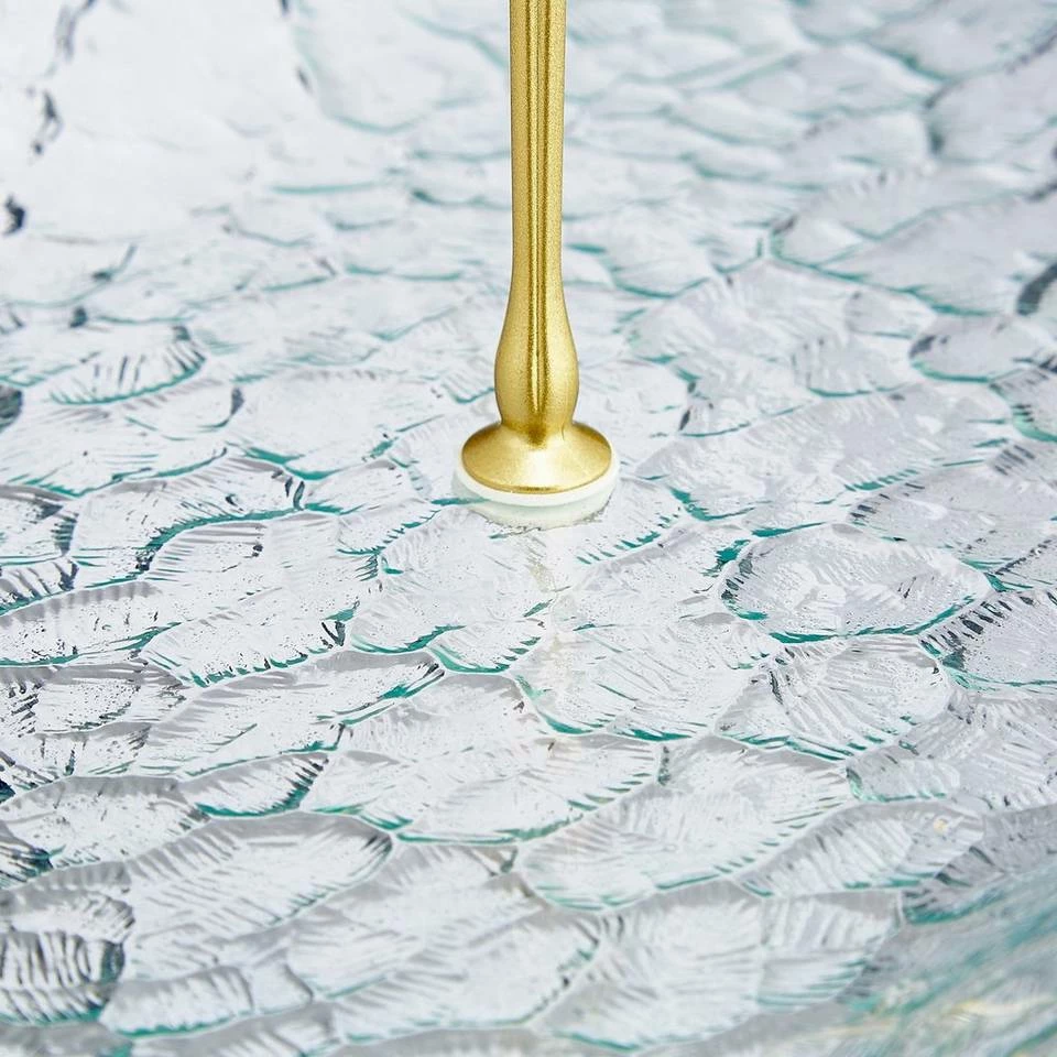 - Details: Tischetagere mit 2 Platten aus Strukturglas & goldener Metallstange – HBT: ca. 25x24x24 cm