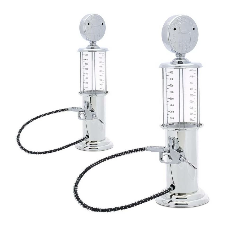 2er Pack Getränkespender / Zapfsäule 900 ml Zapfen Sie Ihr Lieblingsgetränk wie an einer Tankstelle aus 2 Zapfsäulen! Die Getränkespender sind im Design einer nostalgischen US-Zapfsäule gefertigt. Dabei können Sie mit Ihren Freunden richtig schön einen tanken. Einfach Ihr Lieblingsgetränk einfüllen und schon kanns losgehen! Durch die Zapfpistole kann Ihr Getränk nun schnell und sauber auf stilvolle und zugleich originelle Art serviert werden. Das ist ein super Gag für Ihre nächste Party und verspricht ein außergewöhnliches Trinkvergnügen! Die Getränkespender garantieren einfaches Einschenken und Portionieren von diversen Getränken. Das Fassungsvermögen jedes Spenders beträgt ca. 900 ml. Die Getränkespender werden ein super Hingucker sein, und Ihre Gäste Sie darum beneiden! Partyspass pur, damit bleibt kein Glas leer! Produkteigenschaften: Getränkespender im Design einer nostalgischen US-Zapfsäule Verchromtes Metallgehäuse und Kunststoff-Behälter (je 900 ml) Der Dosierungsschlauch inkl. Zapfpistole hat eine Länge von ca. 54 cm. Größe: Höhe ca 48 cm Lieferumfang: 2 Getränkespender 900 ml Rechnung mit ausgew.MwSt.
