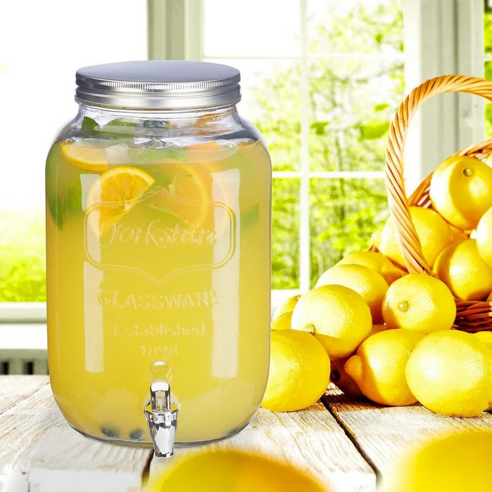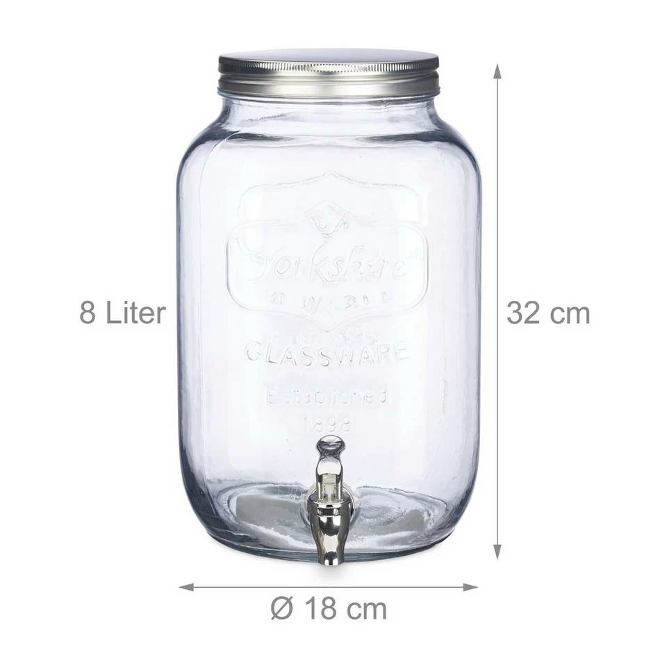 - Getränkespender XL im Retro-Design: Getränkespender aus robustem Glas – Maximales Füllvolumen 8 L