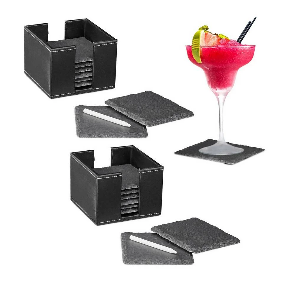 - 16er Set: Graue Schiefer Untersetzer im urigen Look zum Abstellen von Cocktails, Kaffeetassen uvm.