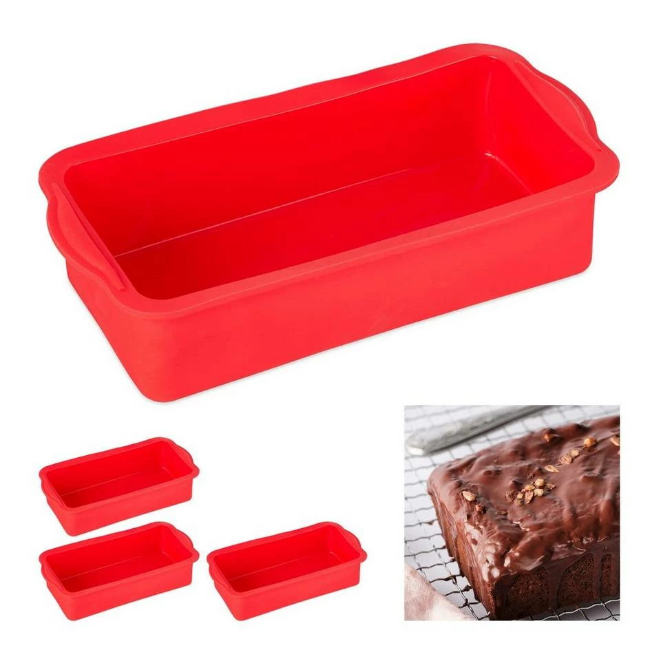 Robuste Kastenkuchenform aus flexiblem Silikon im 4er Set Zeigen Sie, was Sie back-technisch auf dem Kasten haben und überraschen Sie Freunde und Familie mit duftendem Kuchen. Aber auch zum Brotbacken ist die klassische eckige Königskuchenform geeignet. Die robuste Backform kann sowohl im Ofen, als auch in der Mikrowelle und im Gefrierfach zum Einsatz kommen. Trotz ihrer Flexibilität hält die Kuchenform den Teig in Form und sorgt für gleichmäßige Backergebnisse. Dank der Antihaft Funktion lösen Sie den fertigen Kuchen einfach aus der Kastenform. Verwendungshinweise: Die Form nicht einfetten, vor der Verwendung einfach mit kühlem Wasser ausspülen. Backgut in der Form auskühlen lassen, bevor Sie es herauslösen. Kuchen nicht in der Form schneiden.