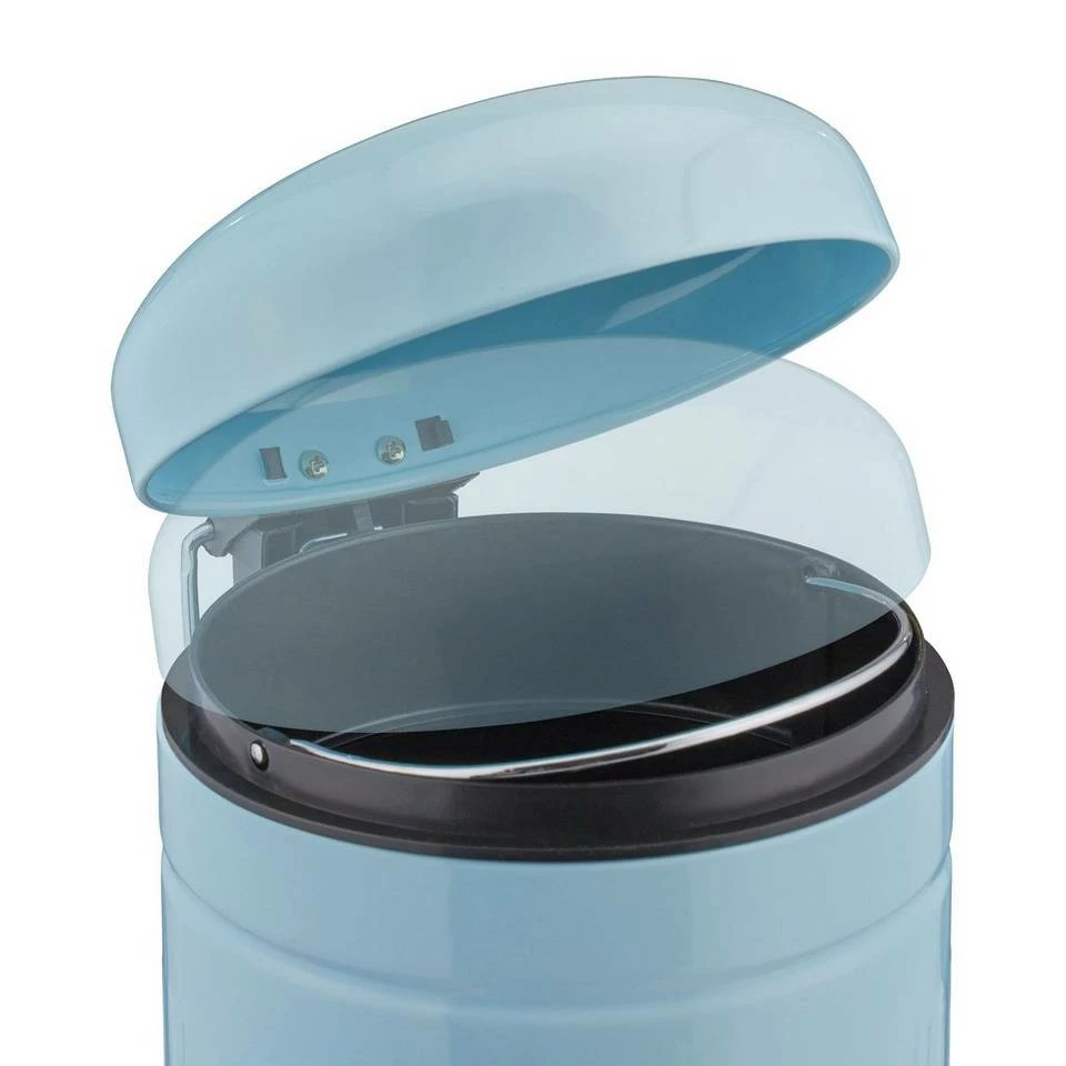 Bunter Abfallbehälter mit Absenkautomatik Dieser kleine Müllbehälter bringt Farbe in Ihr Badezimmer und ermöglicht Ihnen eine hygienische und diskrete Entsorgung Ihrer Kosmetikabfälle. Mithilfe des Trittpedals lässt sich der Badmülleimer ganz einfach ohne Bücken öffnen, der Deckel schließt dank Soft-Close-Funktion anschließend sanft von alleine. Zum bequemen Entleeren der Abfälle entnehmen Sie einfach den Kunststoff-Inneneimer, aber auch der komplette Badezimmereimer lässt sich dank des kleinen Henkels unkompliziert hin und her tragen.