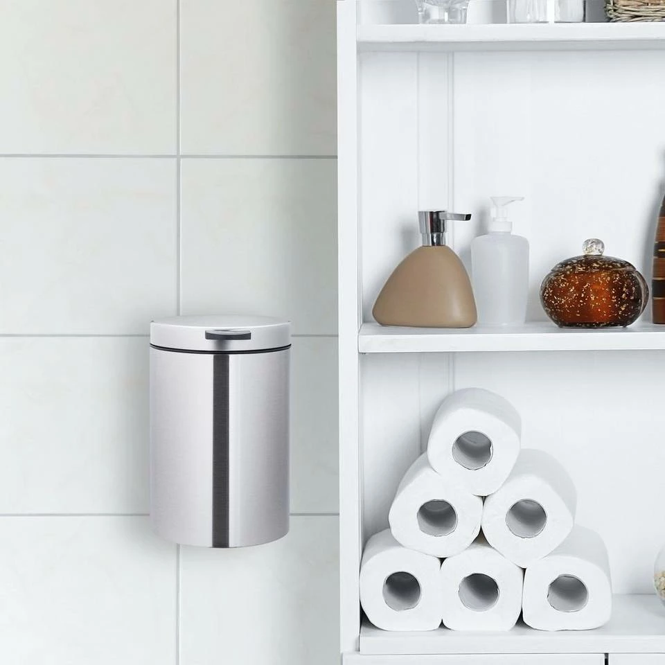 Zeitloser Kosmetikmülleimer mit Wandhalterung Endlich ein Mülleimer, bei dem Sie sich nicht bücken müssen und der gleich neben dem Waschbecken montiert werden kann! In angenehmer Höhe angebracht, ist er einfach am Griff zu öffnen und bietet mit seinen 3 Liter Volumen die Möglichkeit Schmink-, Rasier- und Badabfälle hygienisch zu entsorgen. Dank des herausnehmbaren Inneneimers lässt sich der Inhalt des Abfallbehälters schnell rausbringen. Das Design ist zeitlos und funktional. Die beschichtete Edelstahl-Oberfläche schützt zudem vor Fingerabdrücken.