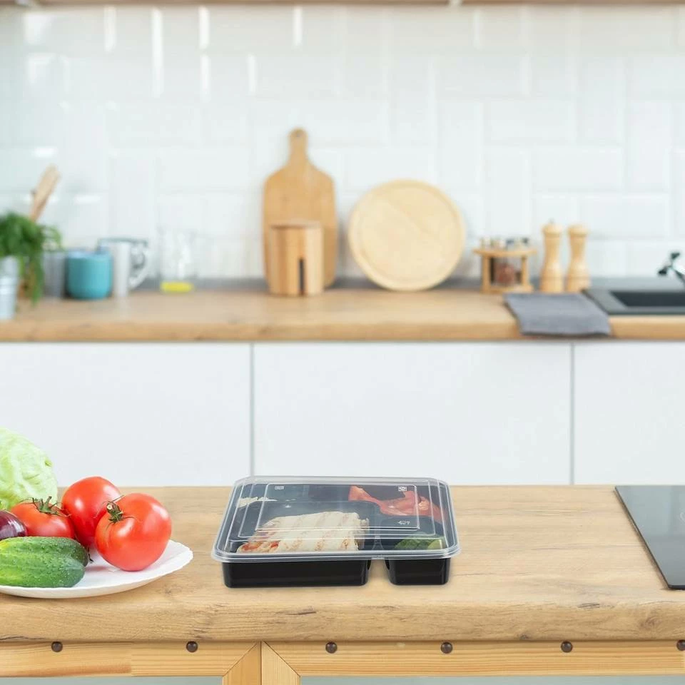 Mikrowellengeeignete Meal Boxen Vollwertige Mahlzeiten helfen, kleine Leistungstiefs während der Arbeit zu überstehen und konzentriert arbeiten zu können. Dank der wiederverwendbaren, auslaufsicheren Essensboxen sind Sie bestens für Arbeitstage gewappnet. Vier separate Fächer helfen Ihnen, vorgekochte Mahlzeiten sinnvoll zu portionieren und voneinander zu trennen. Zusätzlich sparen Sie in der Pause Zeit, da die Speisen in den Food Boxen in der Mikrowelle erhitzt werden können. Ebenso können Sie die Meal Prep Boxen zur Lebensmittelaufbewahrung nutzen.