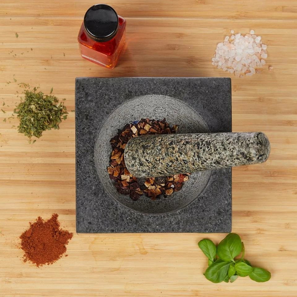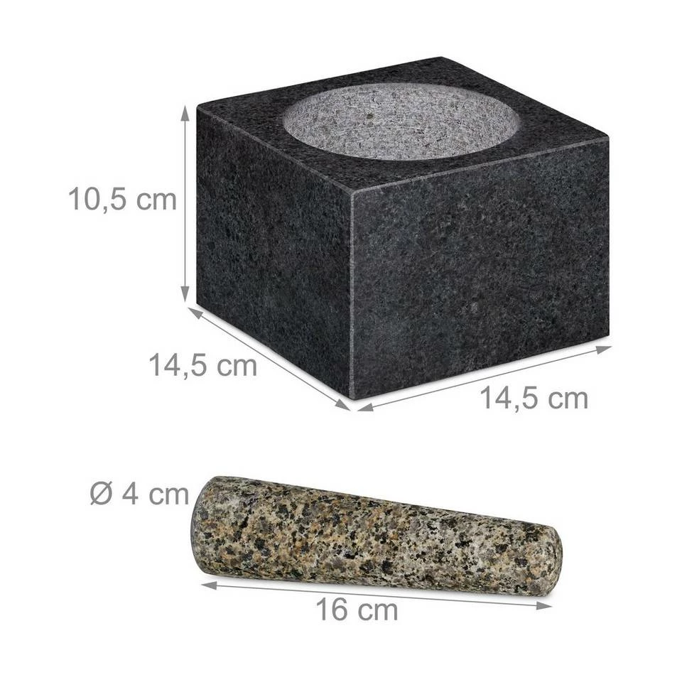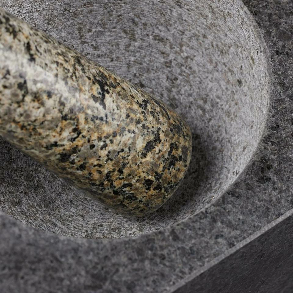 - Hochwertig: Grau marmorierter Granitmörser mit Schlegel – Pflegeleichter, langlebiger Naturstein