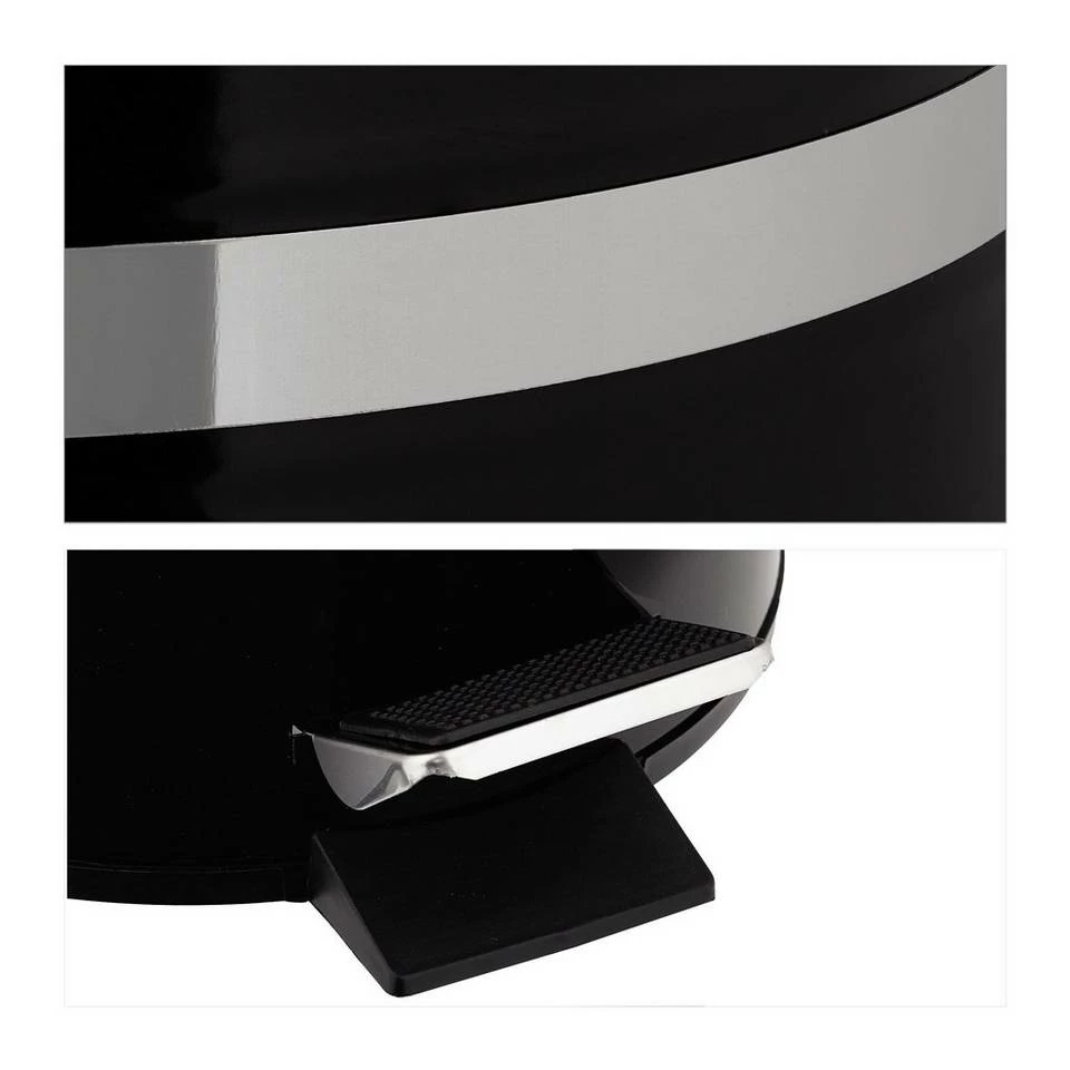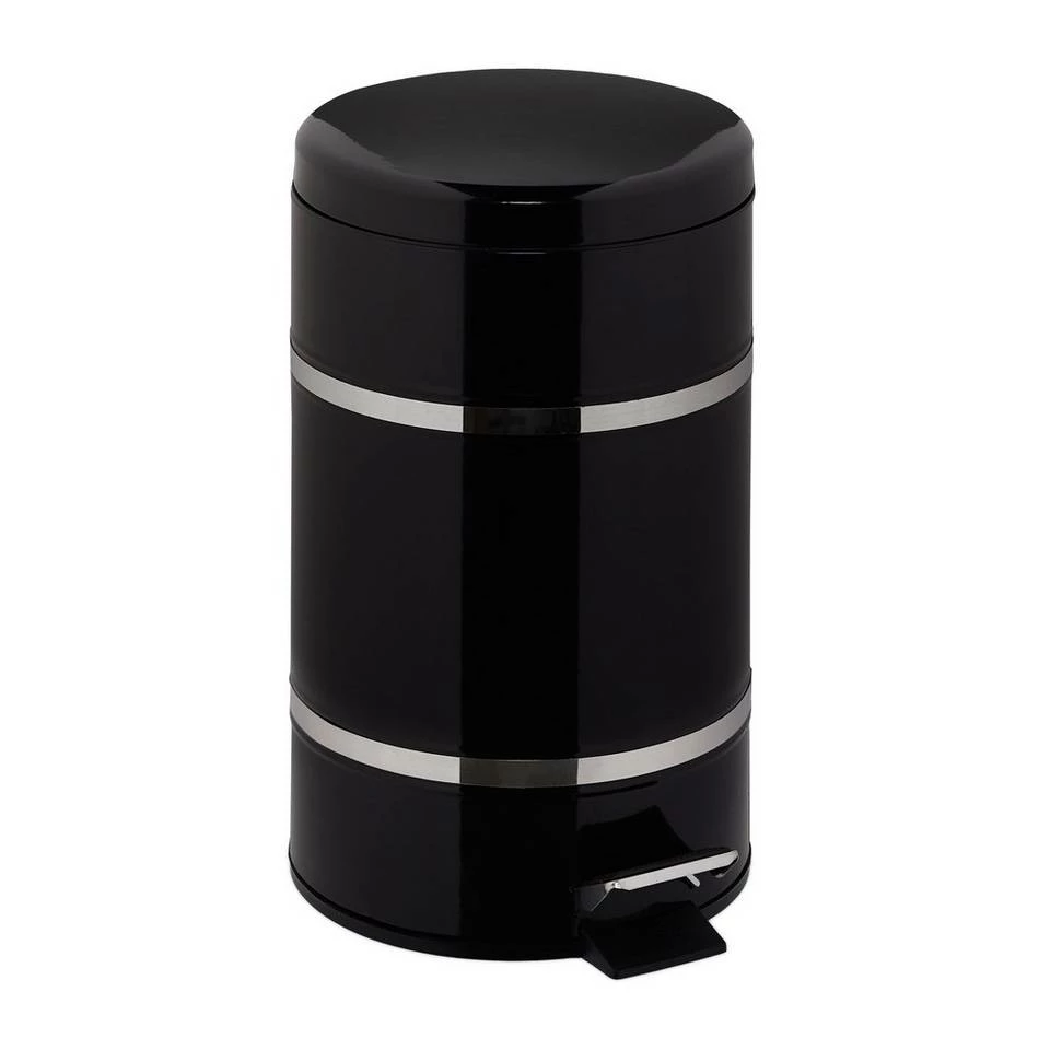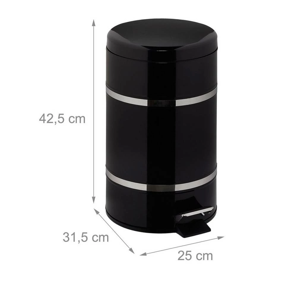 - Design: Schwarzer Badezimmer Mülleimer im modernen Look – Mit 2 glänzenden Metallringen in Silber