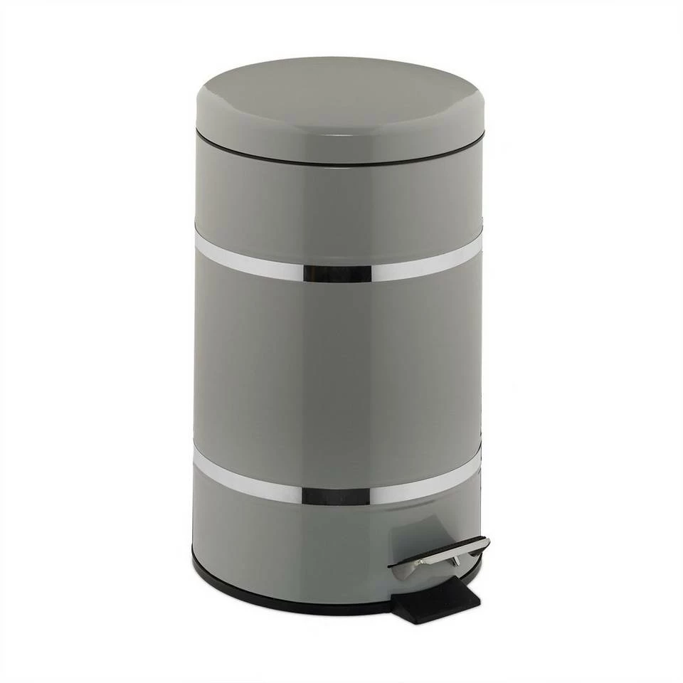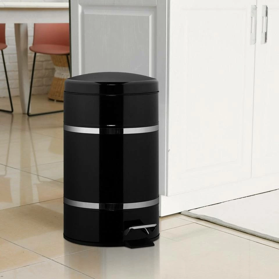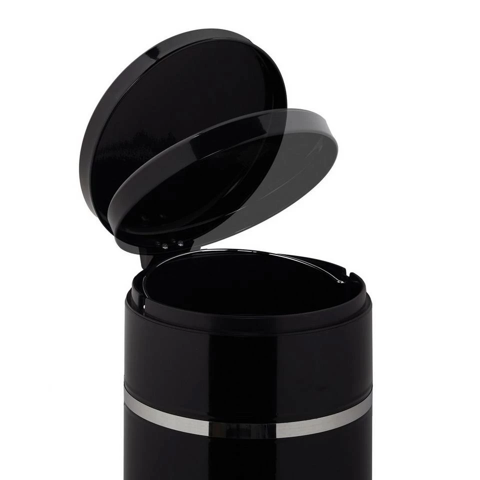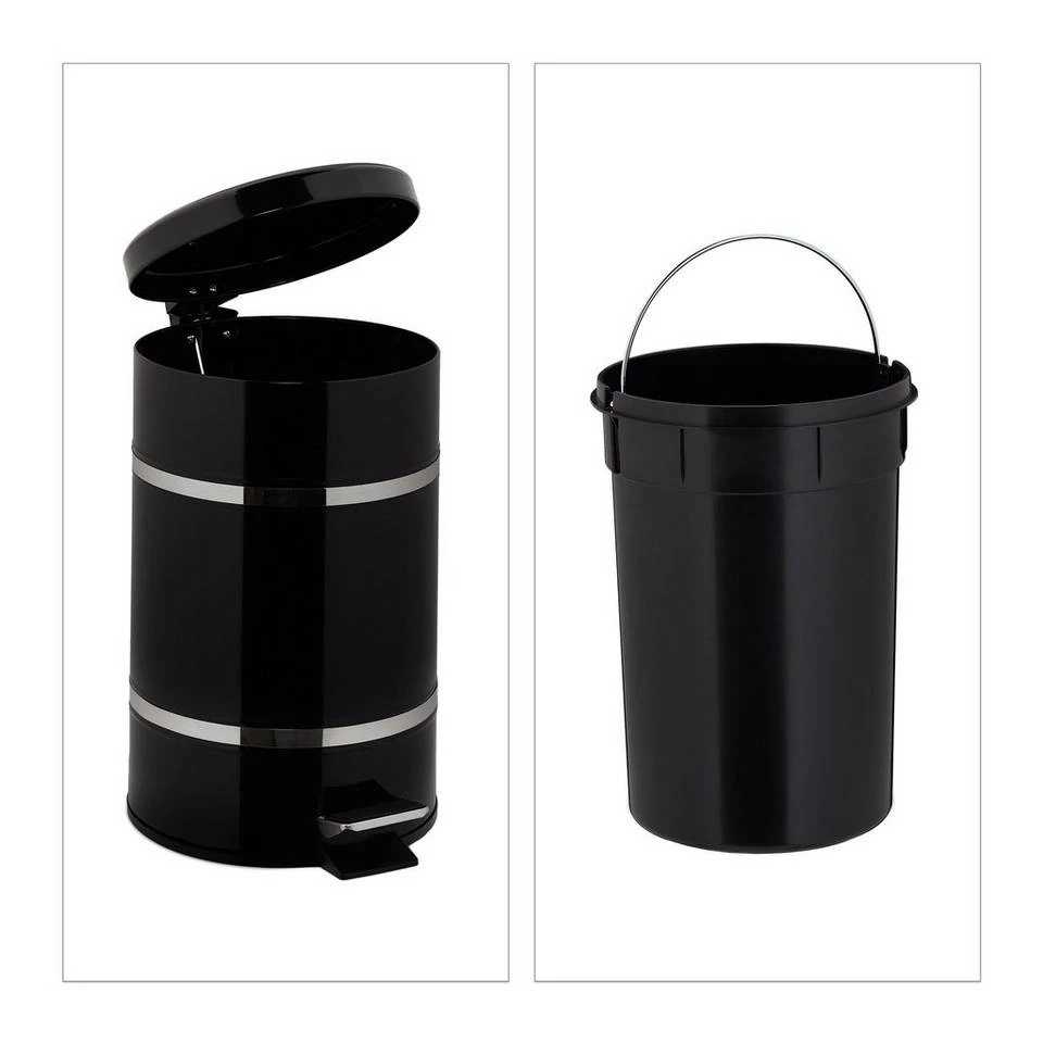 - Design: Schwarzer Badezimmer Mülleimer im modernen Look – Mit 2 glänzenden Metallringen in Silber
