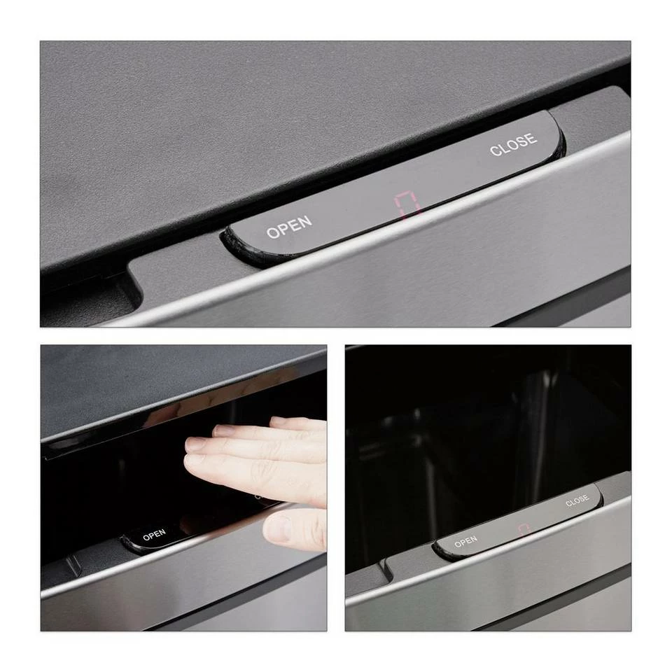 Abfalleimer mit Bewegungssensor Dieser moderne Abfalleimer aus hochwertigem Edelstahl verfügt über einen Bewegungssensor. Eine Handbewegung genügt und der Deckel öffnet sich. Nach 5 Sekunden schließt er automatisch. Betätigen Sie den Deckel jedoch per Knopfdruck, so muss er auch mit dem Drücken auf Close geschlossen werden. Die moderne Optik in stylischem Grau passt gut in die Küche, den Hauswirtschaftsraum oder die Abstellkammer. Das manuelle Öffnen und Schließen des Küchenmülleimers ist ebenso möglich.