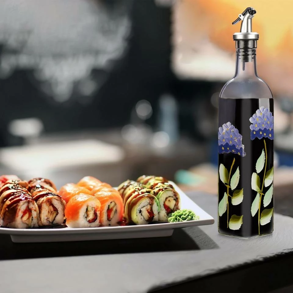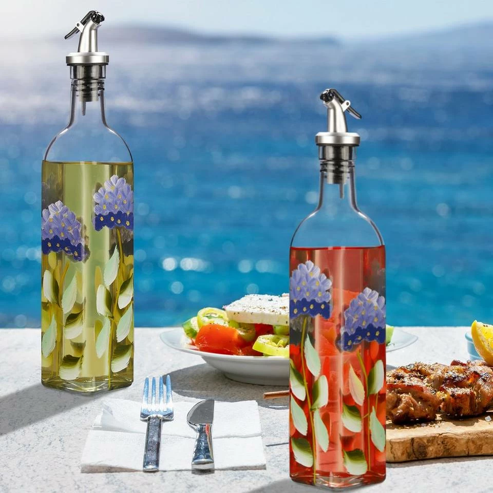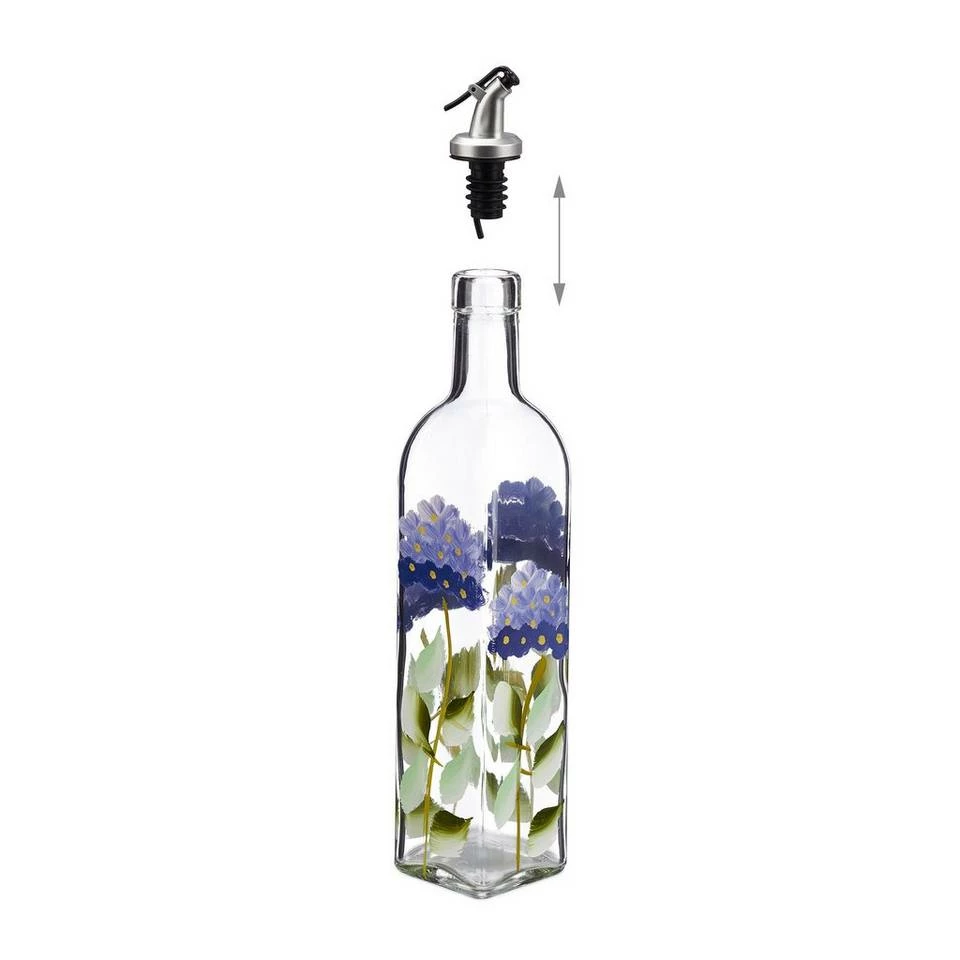 - Design: Handbemalte Öl- und Essigspender mit dekorativem Blumenmuster – Viele kleine, blaue Blüten