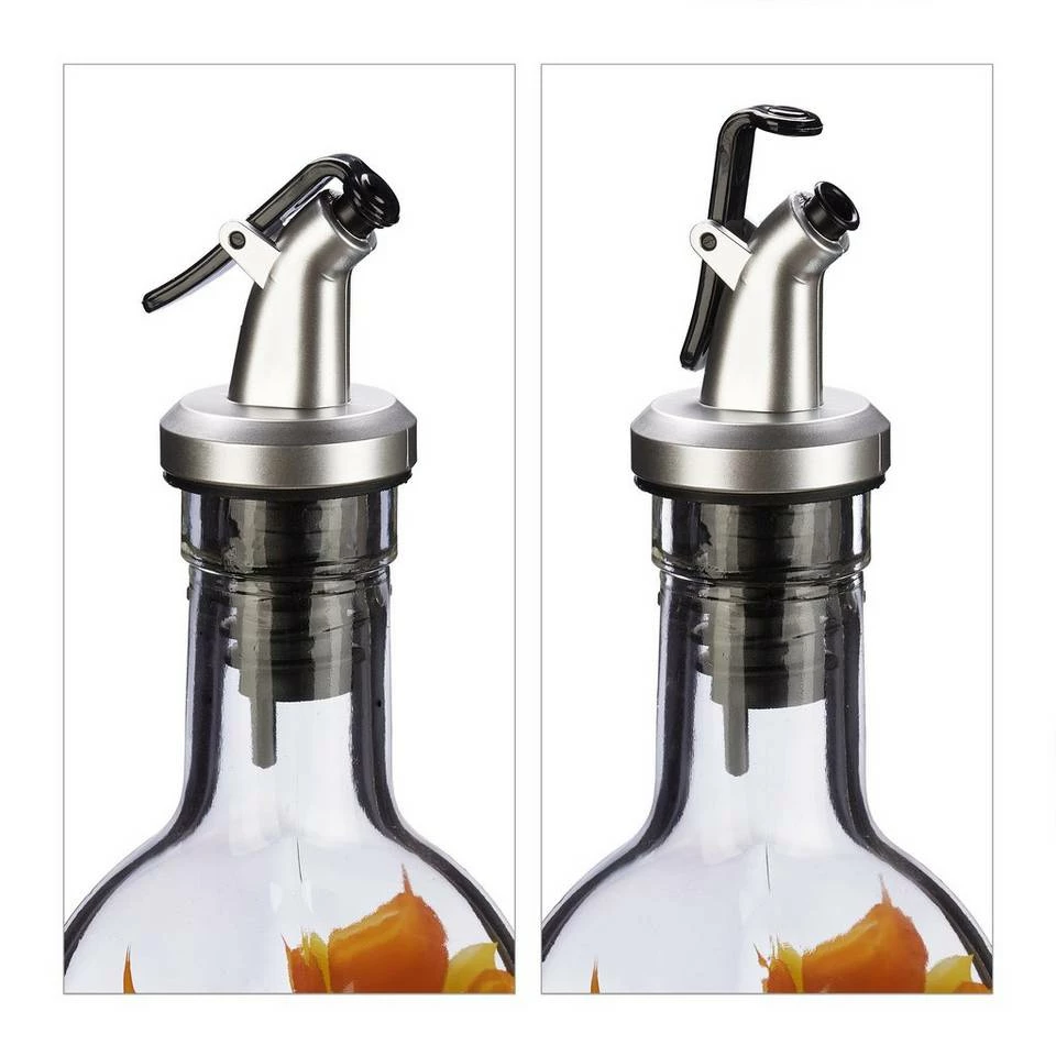 - Mit Dosierhilfe: Öl- und Essig-Flaschen mit praktischem Ausgießer – Einhändiges Öffnen und Schließen