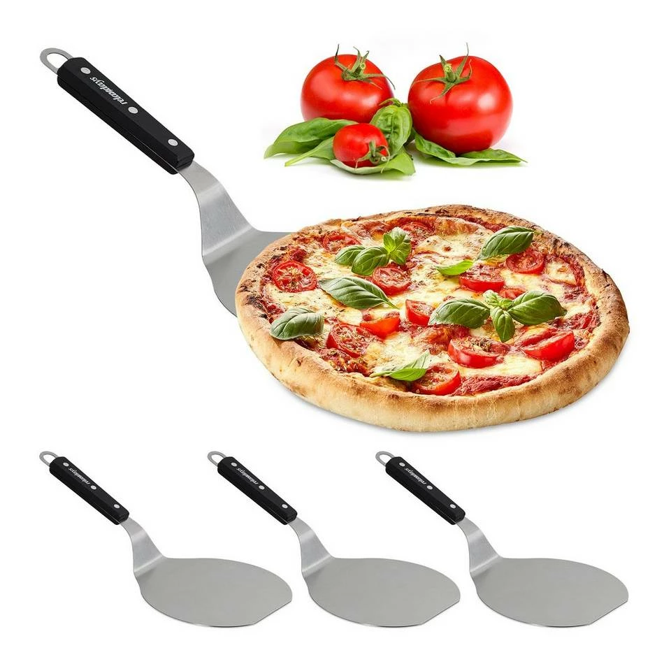 Handlicher Pizzaheber für die Küche im 4er Set Wenn Sie mit der nächsten Pizza wie ein echter Profi umgehen möchten, ist der Pizzaschieber aus lebensmittelechtem Edelstahl die perfekte Wahl. Dank seiner dünnen Kante gelingt es dem Pizzaheber spielend, unter den Teig zu gelangen. Der Holzgriff ist handlich und so weit vom Schaufelblatt entfernt, dass Sie keinerlei Verbrennungen zu befürchten haben. Auch für das Anheben und Servieren von Torten, Flammkuchen und anderen Köstlichkeiten ist die aufhängbare Pizzaschaufel geeignet.