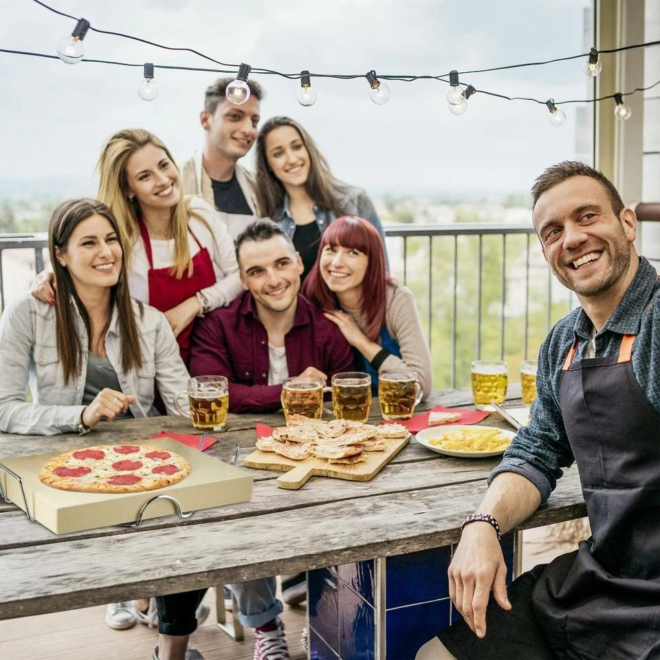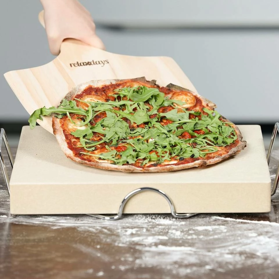 - Durch den Metallhalter lässt sich alles leicht in den Backofen schieben und wieder entnehmen – Backen Sie knusprige Steinofenpizza oder Flammkuchen im heimischen Ofen oder Grill