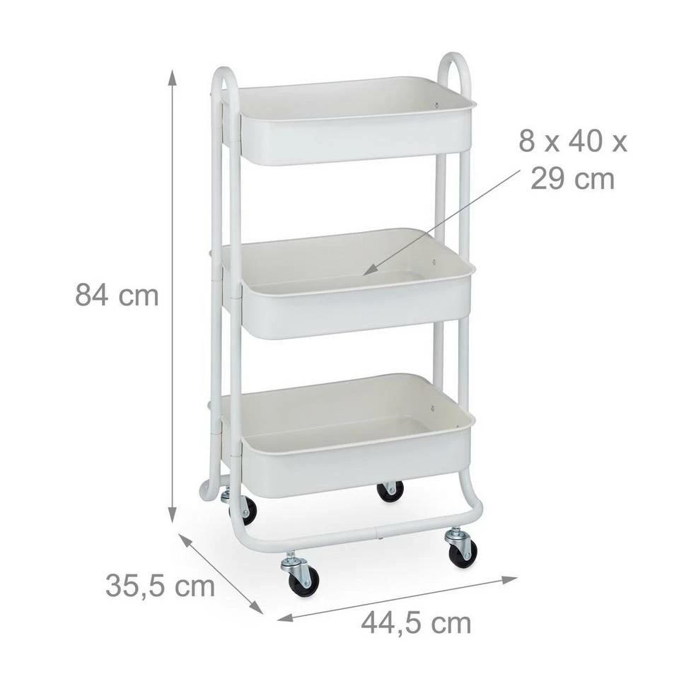 - Praktisch: Weißes Rollregal aus Metall zur optimalen Raumausnutzung – HBT: ca. 84 x 44,5 x 35,5 cm