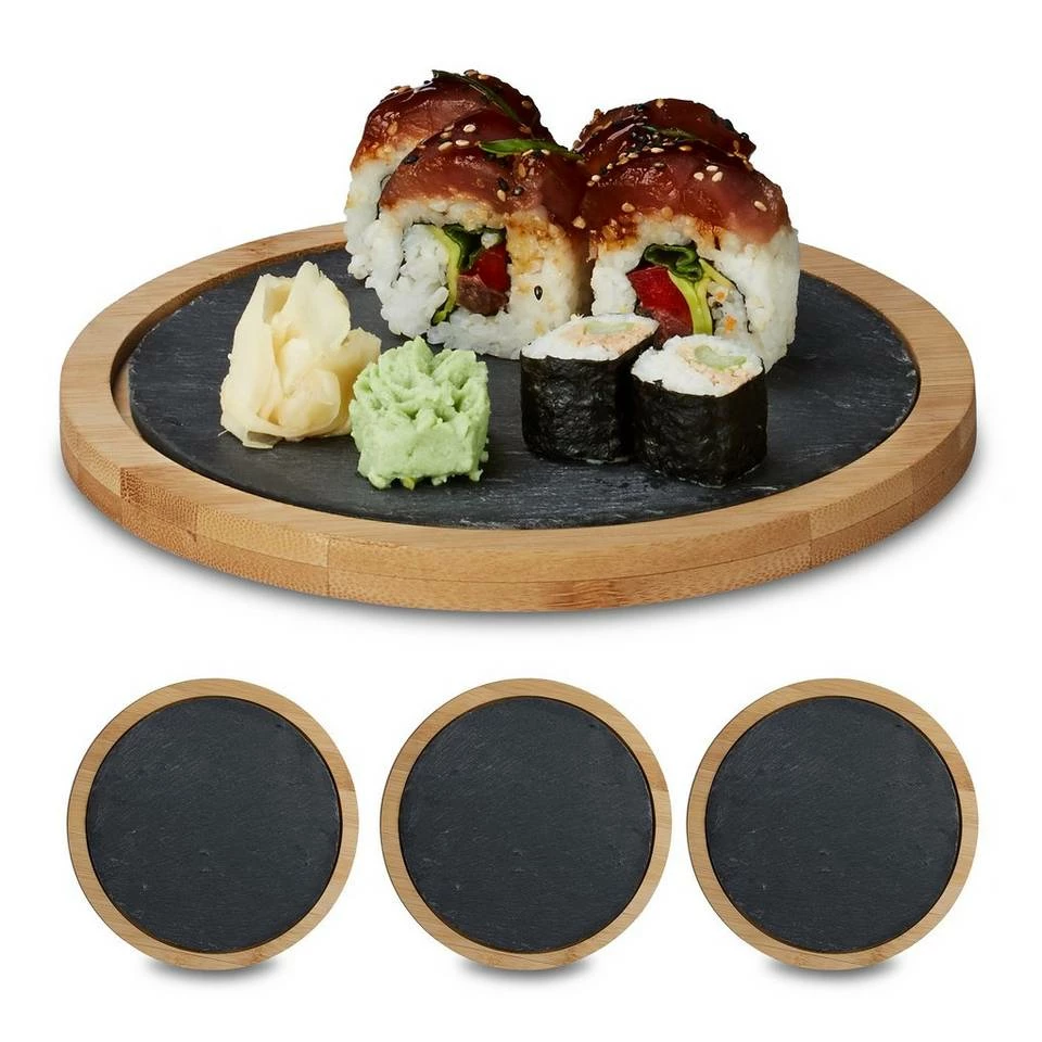 - Küchenutensil: 4x rundes Bambusbrett ideal zum ästhetischen Servieren kleinerer Speisen