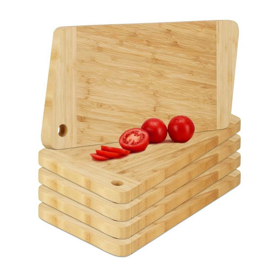 - 5er Set: 5 x Schneidebrett aus Bambus – Bietet viel Platz, um Zutaten bequem vorzubereiten