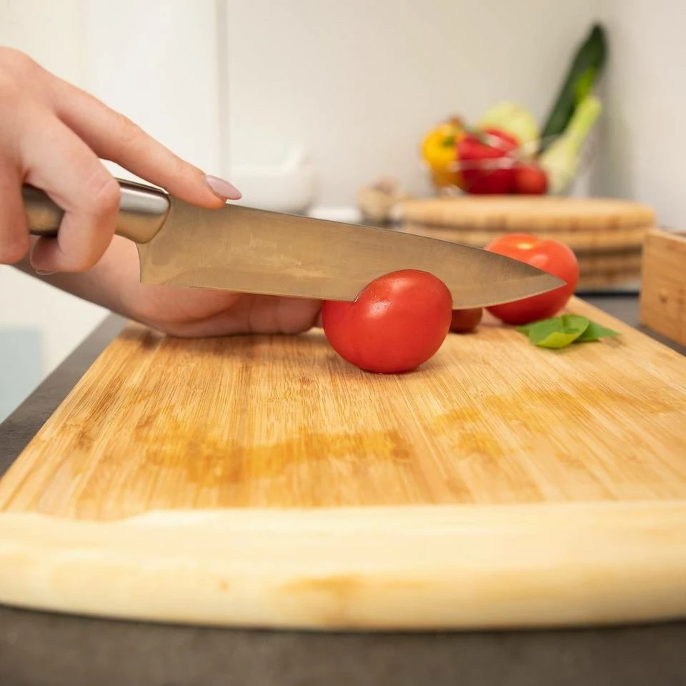 - Nachhaltiges Material: Besteht aus pflegeleichtem Bambus – Die Verwendung von Bambus macht das Schneidbrett strapazierfähig, messerschonend und lebensmittelecht