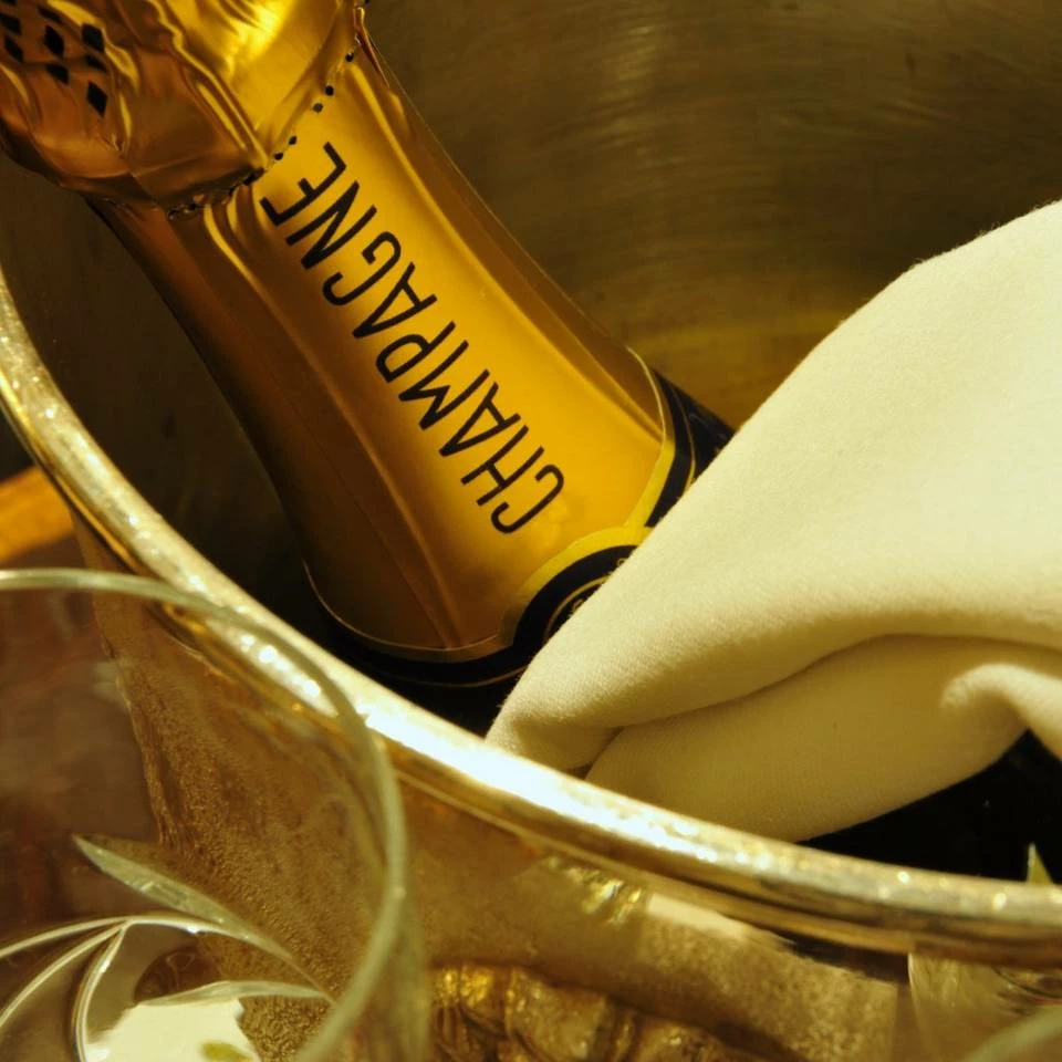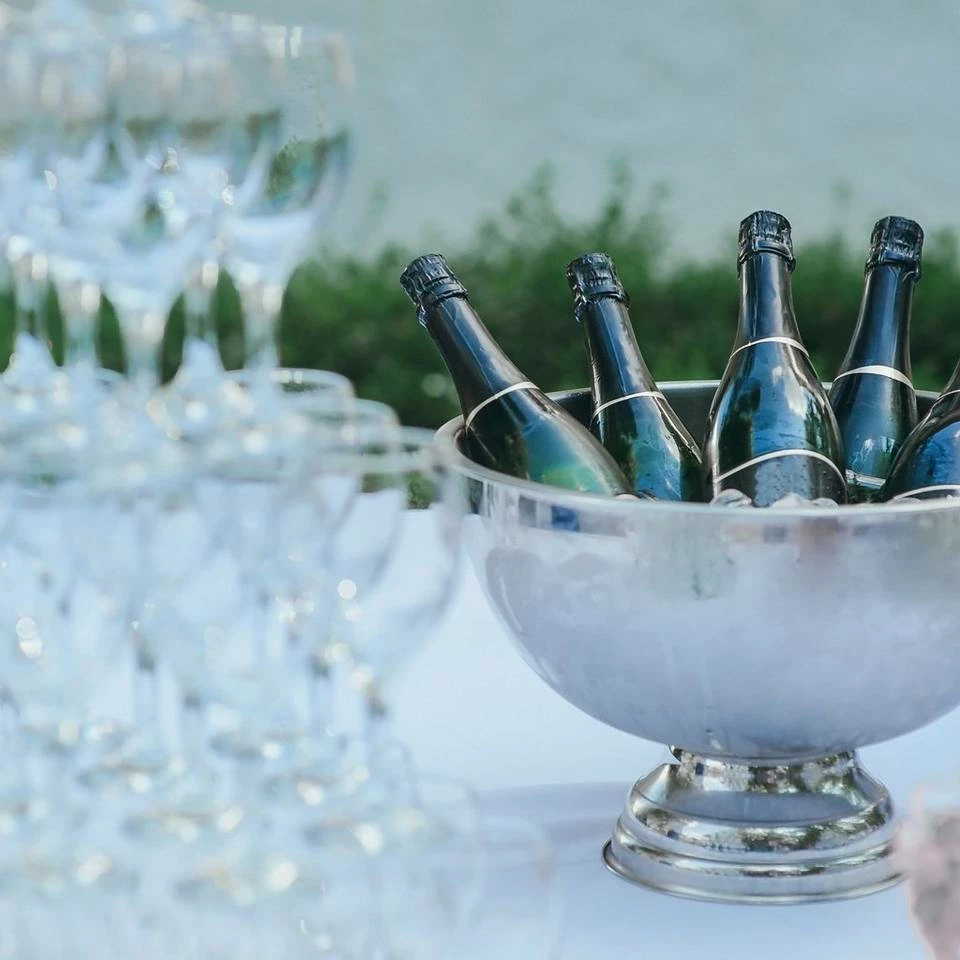 - Elegante Tischdeko: Der silberne Champagnerkühler verleiht jedem Tisch Stil – Schlichte Sektschale