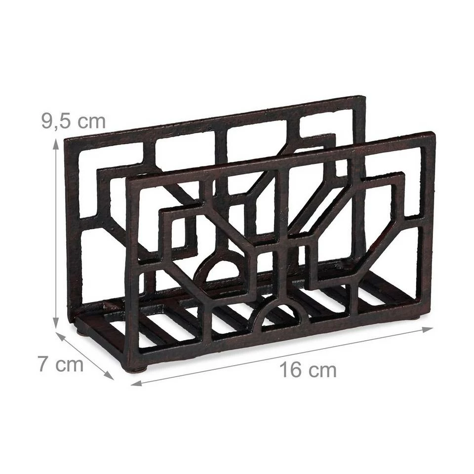 - Design: Rustikaler Gusseisen Serviettenhalter in Vintage Optik – geometrisches Muster in antikem Braun