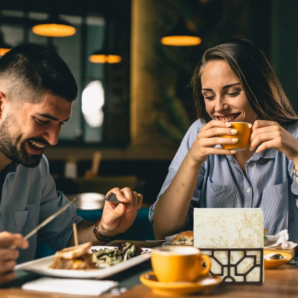 - Praktisch: Der Serviettenspender steht auf dem Tisch in Reichweite – Servietten sind immer griffbereit