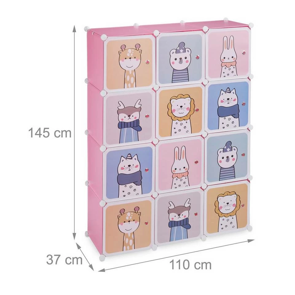 - Für Kinder: Rosafarbenes Steckregal mit Tier-Motiven – Kinderzimmerregal für Mädchen und Jungen