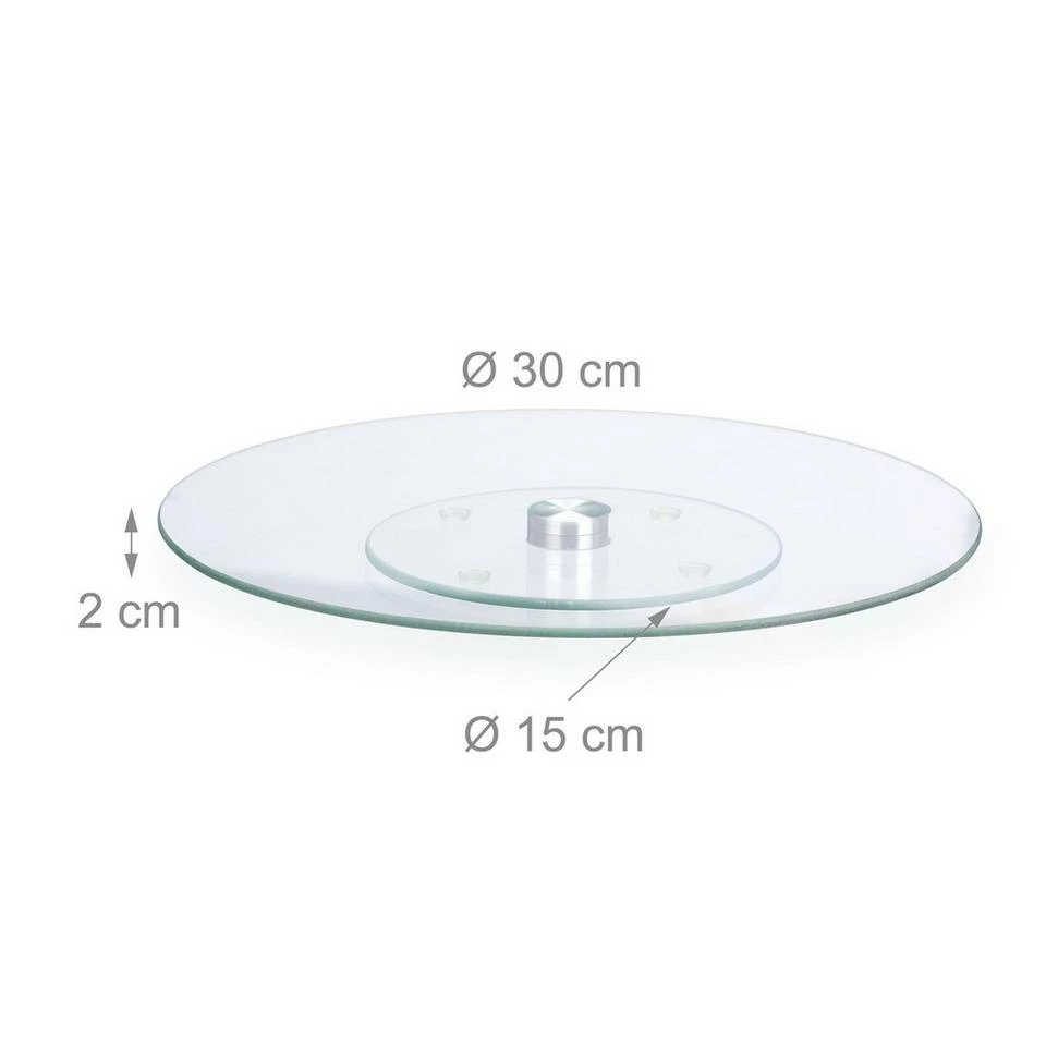 - Basics: Moderne transparente Glas Kuchenplatte mit silbernem Drehelement – Ca. 30 cm D für große Kuchen