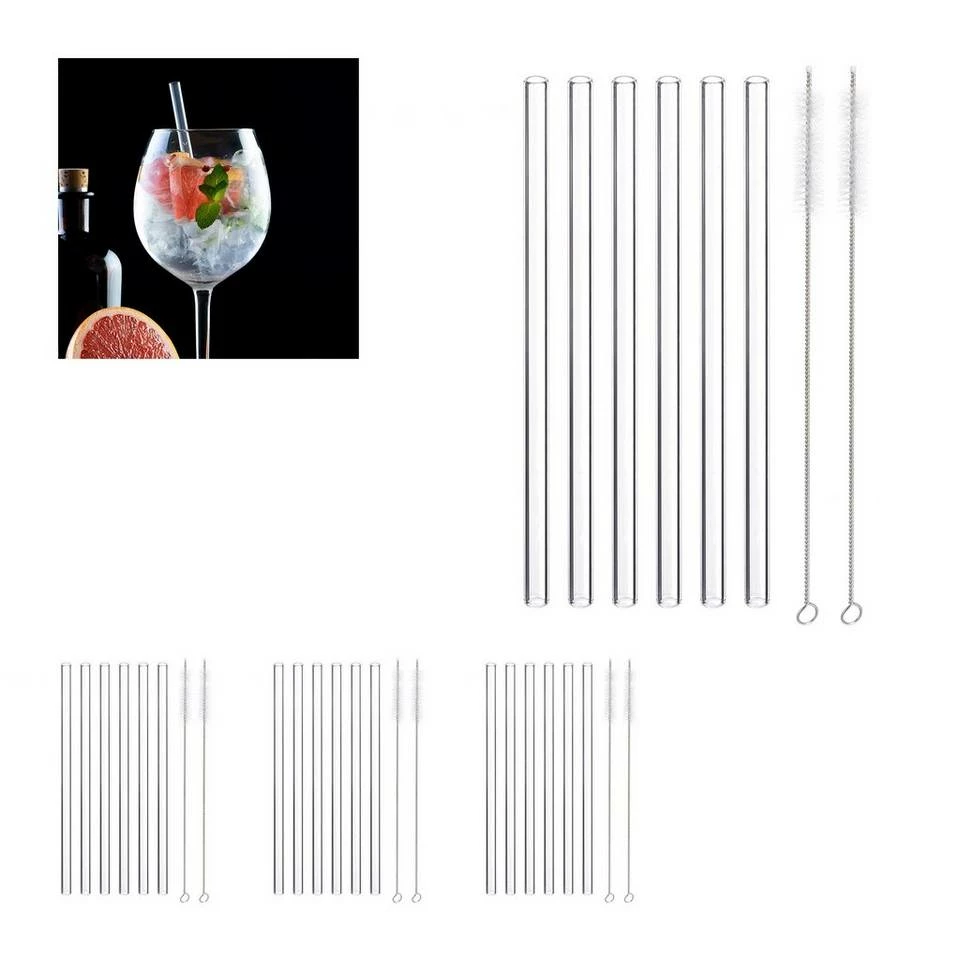 - Gerade: Dickwandige Glastrinkhalme mit einem Außendurchmesser von ca. 10 mm – Länge ca. 23 cm