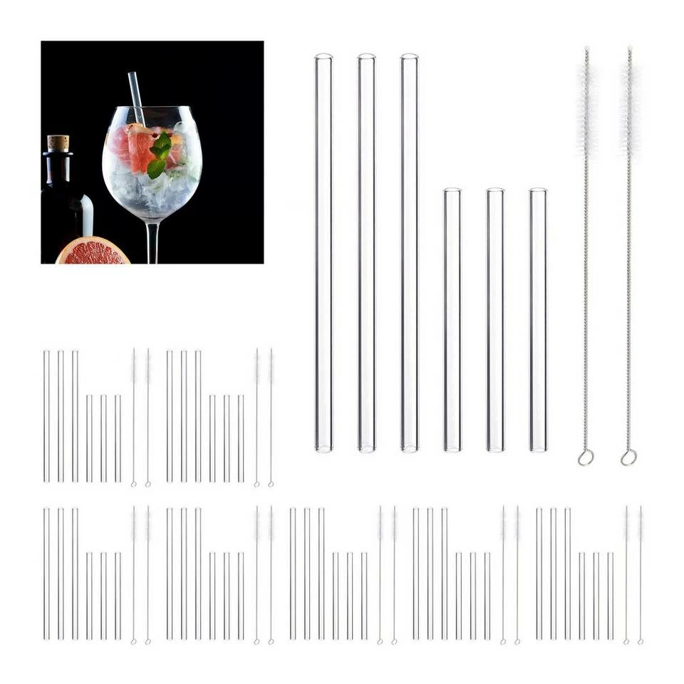 - Gerade: Dickwandige Glastrinkhalme mit Außendurchmesser von ca. 10 mm – Ca. 15 u. 23 cm Länge gemixt