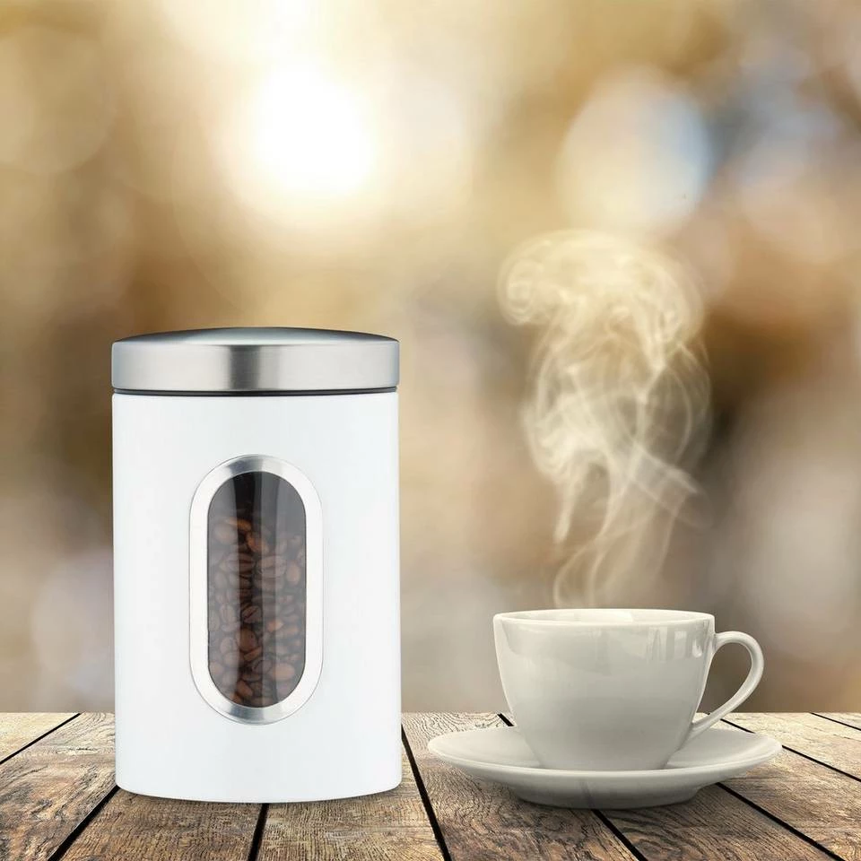 Vielseitige Aufbewahrungsdose mit Deckel Mit diesem Aufbewahrungsbehälter bringen Sie Ordnung in Ihre Küche & behalten dank des Sichtfensters immer den Überblick über Ihre Lebensmittelvorräte. Der Vorratsbehälter eignet sich besonders zur Aufbewahrung von Kaffeebohnen, Mehl, Zucker, Müsli & mehr. Der fest schließende Deckel sorgt dafür, dass der Inhalt aromadicht verwahrt wird. Mehrere Vorratsdosen nebeneinander sind zudem ein toller Hingucker im Küchenregal & bilden eine praktische Alternative zu herumliegenden Plastikverpackungen. Hinweis: Zur Aufbewahrung pulvriger Lebensmittel wie Mehl oder Zucker bitte mit Umverpackung einfüllen.