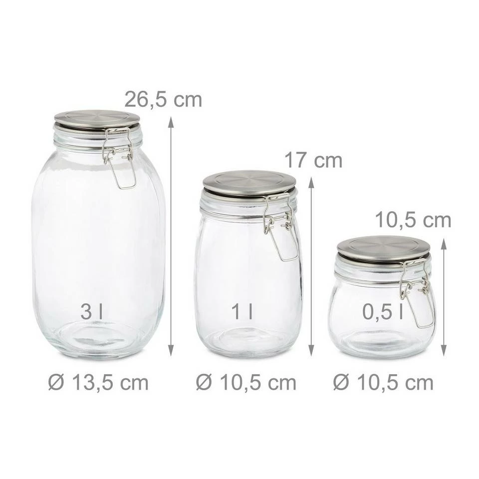 - 3er Set: Einmachgläser in 3 praktischen Größen – Mit ca. 500, 1000 und 3000 ml Fassungsvermögen