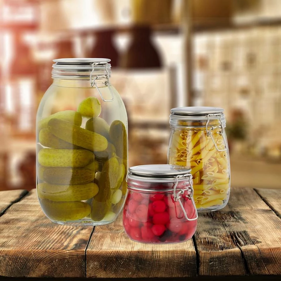 - Praktisch: Bügelglas erlaubt stets einen Blick auf Inhalt und Füllstand – Immer sofort griffbereit